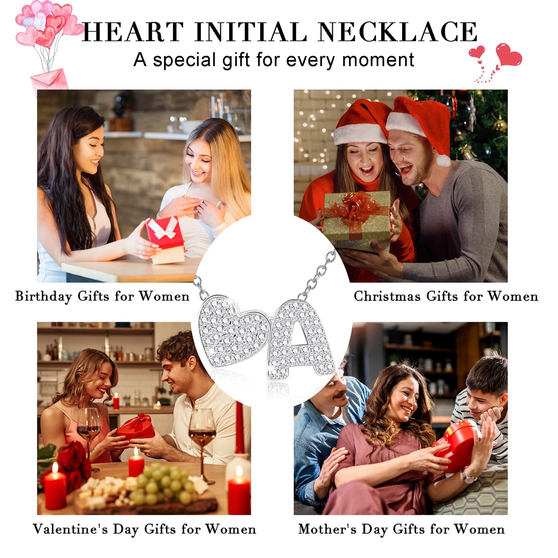 18K White Gold Plated Love Heart Initial Necklaces for Women Girls CZ S925 Sterling Silver Letter a Pendant Chain Birthday Christmas Jewelry Gifts Teen Mom Stocking Stuffers Kids Age Ideas